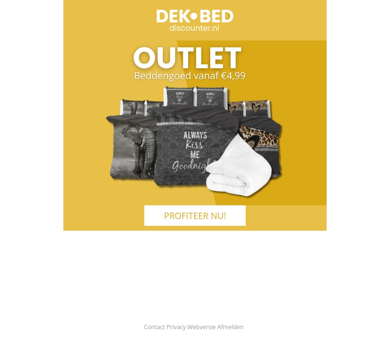Bij Dekbed-discounter vind je nu geweldige beddengoed-aanbiedingen vanaf slechts €4,99. Van stijlvolle dekbedovertrekken tot comfortabele dekens, mis deze outlet-kortingen niet. Bezoek onze website en profiteer direct van deze droom-deals!