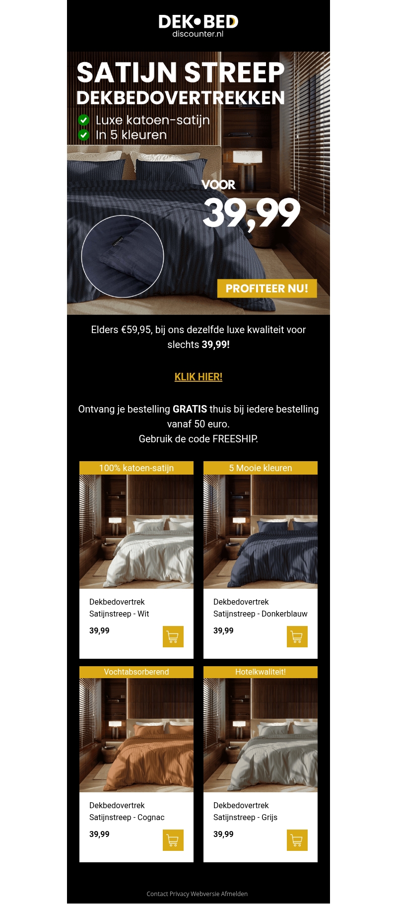 Ervaar de luxe van katoen-satijn dekbedovertrekken aangeboden voor een speciale prijs van 39,99. Verkrijgbaar in vijf prachtige kleuren en geschikt voor elke slaapkamer. Profiteer nu van deze exclusieve aanbieding en ontvang gratis verzending vanaf 50 euro met code FREESHIP.