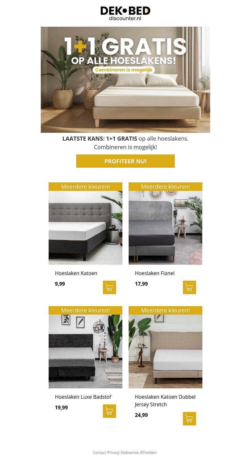 Mis het niet: 1+1 GRATIS op alle Hoeslakens!