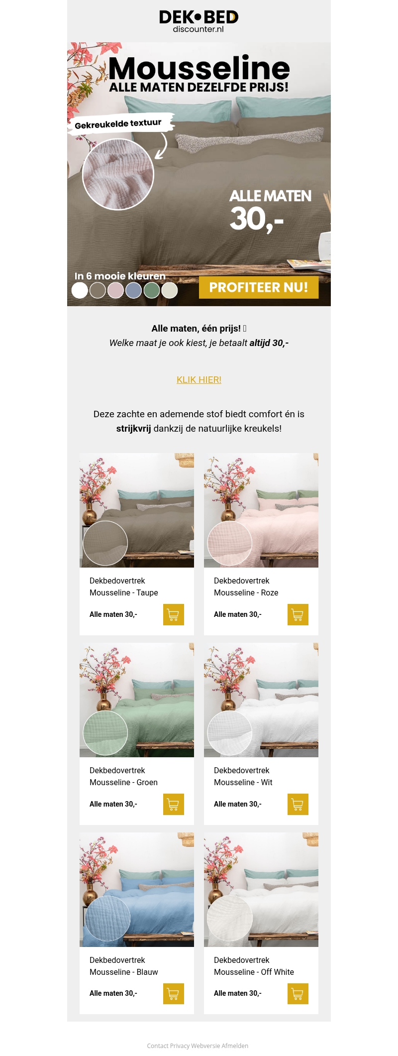 Mousseline: Alle maten voor 30,-