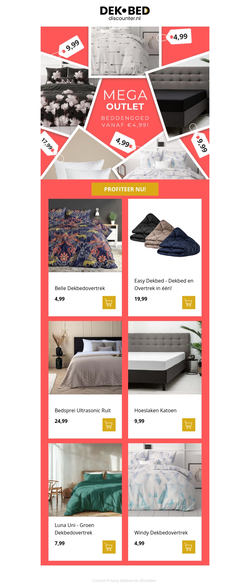 Profiteer van de megadeals bij onze outlet! Met prijzen vanaf slechts €4,99 bieden we een breed scala aan beddengoed. Van dekbedovertrekken tot hoeslakens, er is voor ieder wat wils. Ontdek onze nieuwe voorraad en upgrade je slaapkamer voor minder. Mis deze geweldige kans niet!