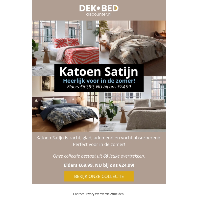 Katoen Satijn is zacht, glad, ademend en vocht absorberend. Perfect voor in de zomer! Onze collectie bestaat uit 60 leuke overtrekken. Elders €69,99, NU bij ons €24,99!