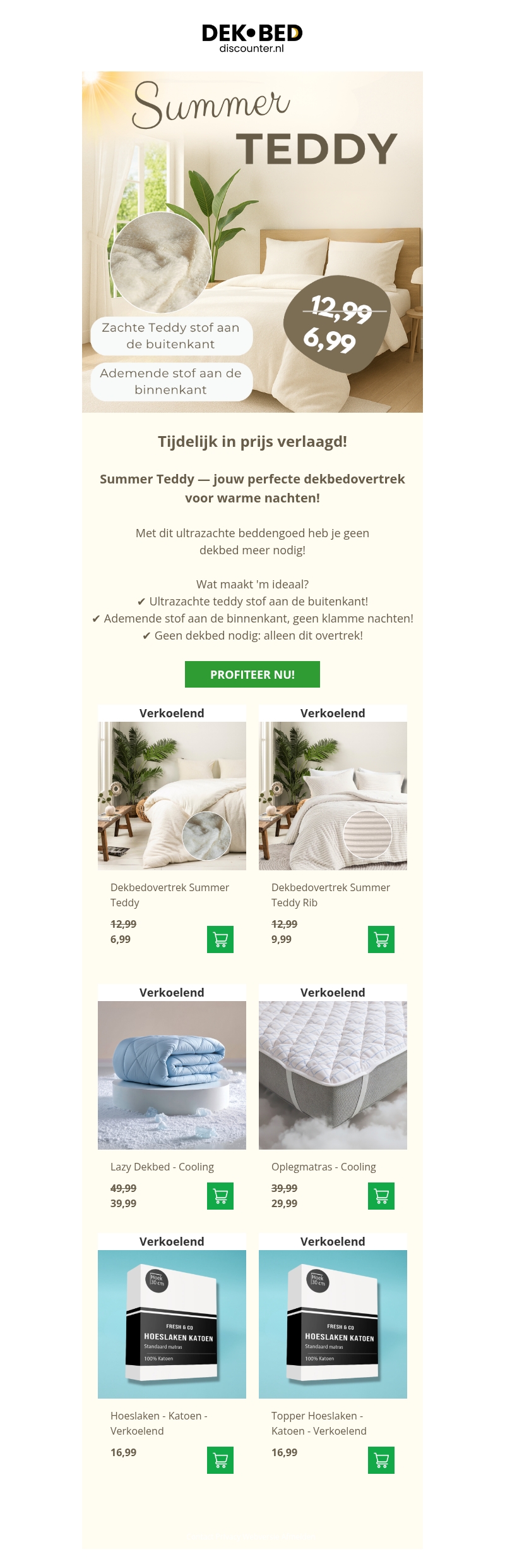 Summer Teddy nu voor 6,99! Perfect voor warme nachten!