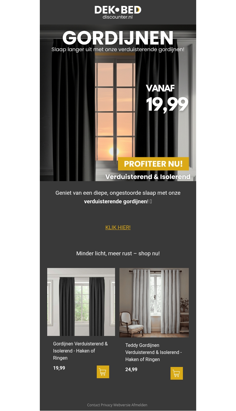 Maak uw slaapkamer compleet met onze verduisterende gordijnen. Geniet van een ongestoorde nachtrust dankzij de isolerende eigenschappen. Beschikbaar vanaf slechts 19,99. Kies uit diverse stijlen voor elke slaapkamerinrichting.