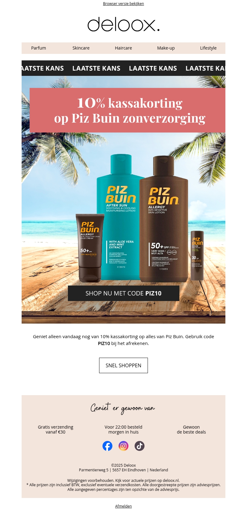 laatste kans 10 kassakorting op piz buin zonverzorging z0bcnawx