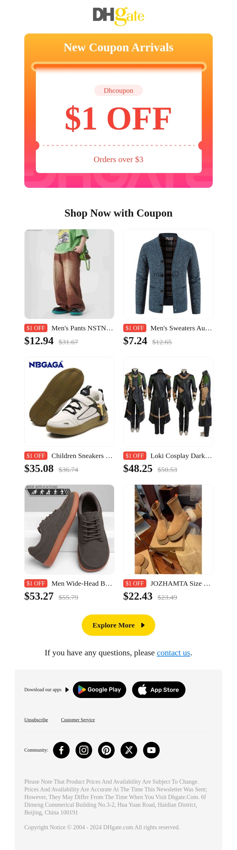 Beleef een unieke winkelervaring met onze nieuwe kortingscoupon op DHgate. Geniet van $1 korting bij bestellingen boven $3. Bekijk ons assortiment van stijlvolle kleding en trendy accessoires. Deze aanbieding geldt voor een beperkte tijd, dus mis het niet. Verken onze nieuwste collecties en ontvang direct korting. Winkel vandaag nog en profiteer van geweldige deals.
