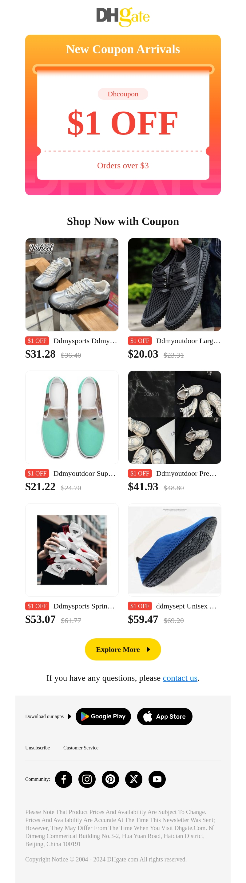 Geniet van $1 korting op bestellingen van meer dan $3 bij DHgate. Deze geweldige aanbieding stelt u in staat om voordelig te winkelen bij diverse merken, zoals Ddmsports en Ddmyoutdoor. Zorg ervoor dat u deze kans grijpt om stijlvolle schoenen en meer te kopen. Shop nu en bespaar met onze exclusieve kortingscoupon!