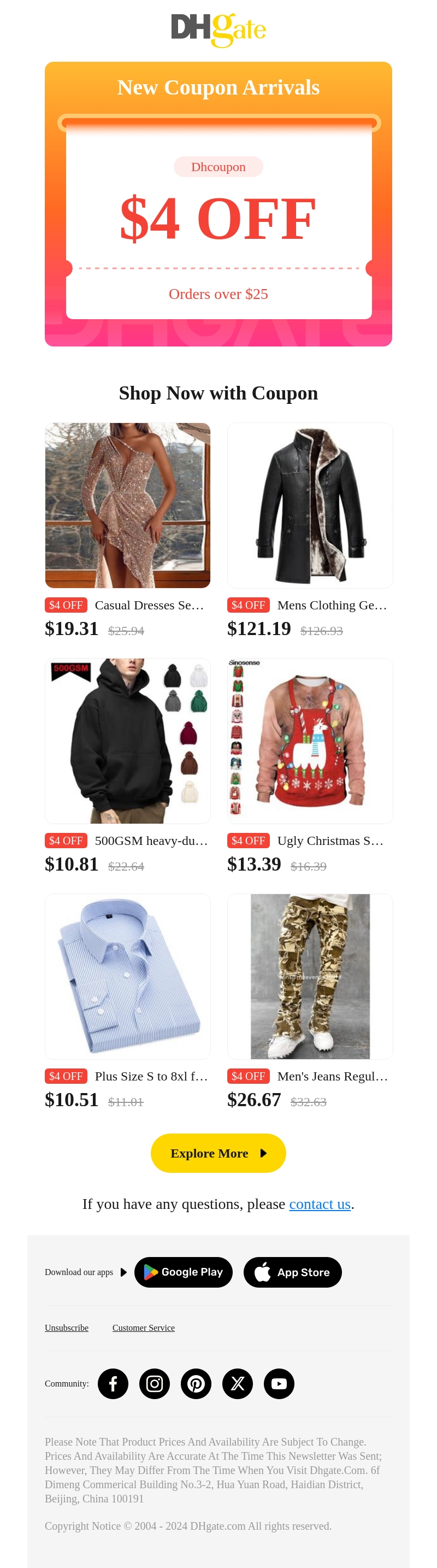 Ontdek de nieuwste aanbiedingen met onze exclusieve coupon! Geniet van $4 korting op bestellingen boven $25. Koop modieuze kleding en accessoires tegen geweldige prijzen. Mis deze kans niet om te besparen bij uw volgende aankoop. Gebruik de coupon 'Dhcoupon' en start met besparen. Ontvang de beste deals vandaag nog!
