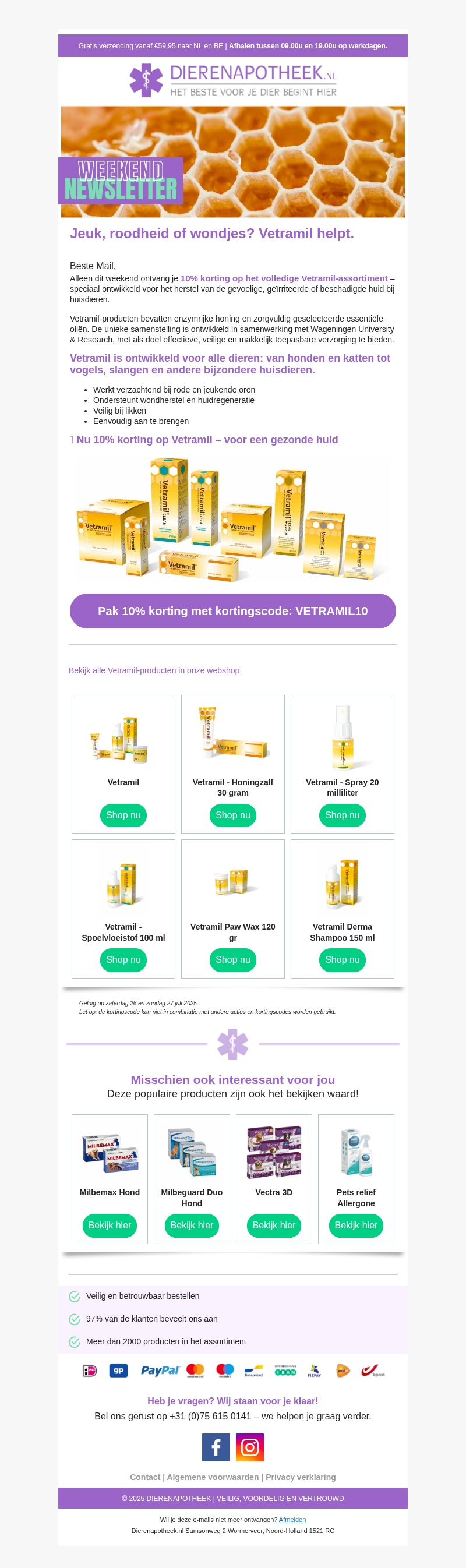 π Dit weekend: 10% korting op alle Vetramil-producten!