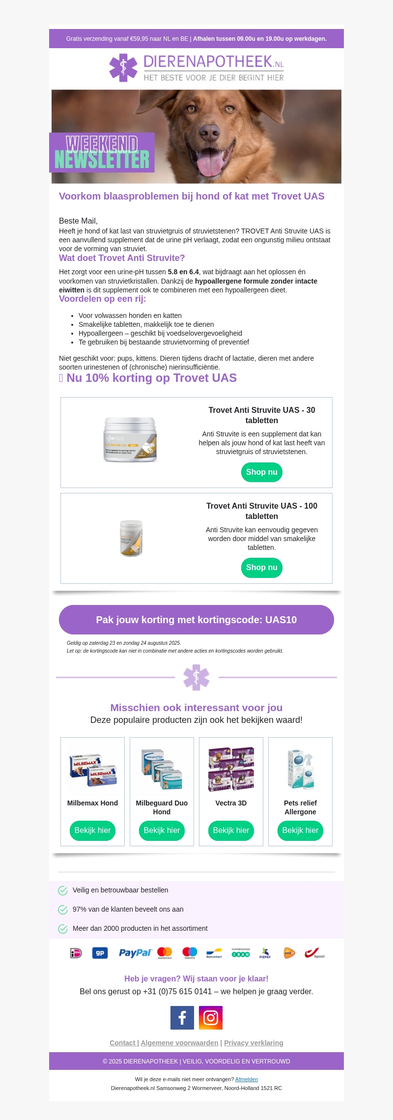 π§ͺ Dit weekend 10% korting op TROVET UAS