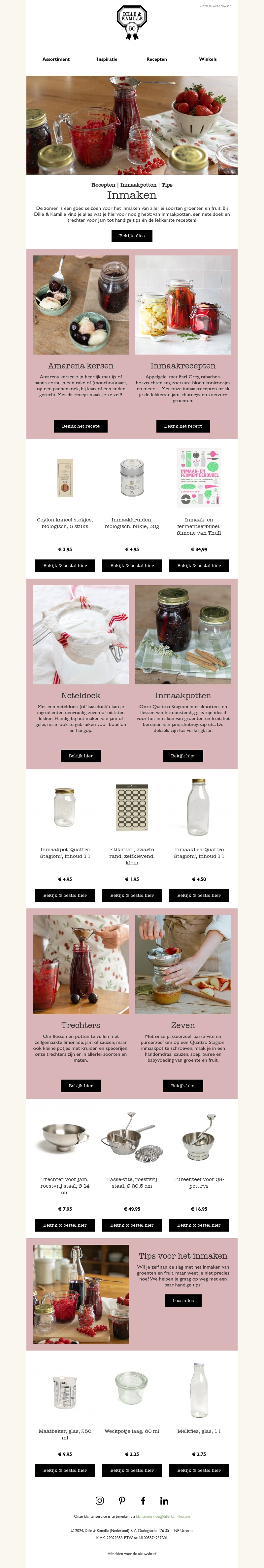 Het is de perfecte tijd om te beginnen met inmaken! Ontdek heerlijke inmaakrecepten en praktische tips om groenten en fruit langer te bewaren. Bij Dille & Kamille vind je alle benodigdheden voor succesvol inmaken, van handige tools tot smakelijke recepten.