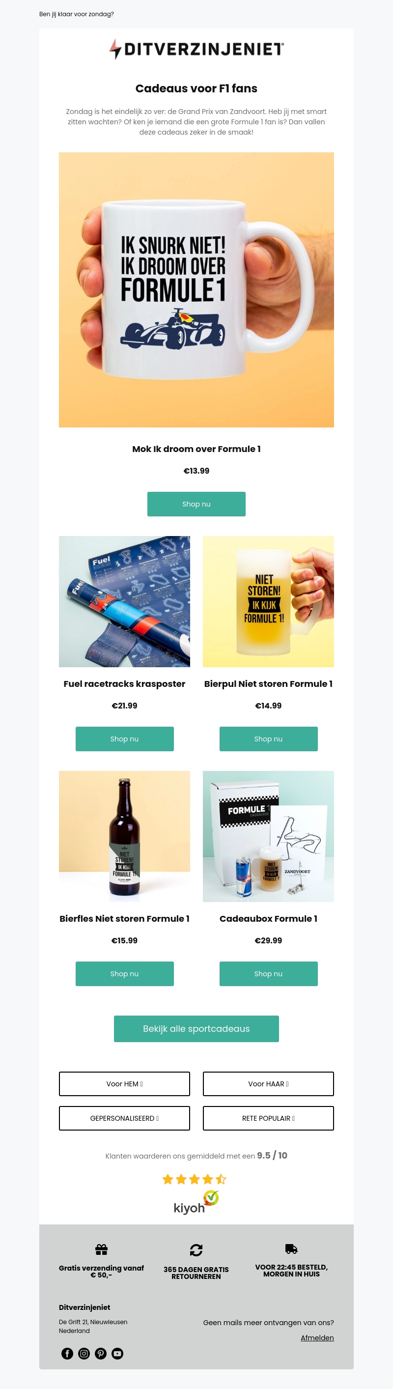 De Grand Prix van Zandvoort komt eraan! Bereid je voor met onze topcadeaus voor Formule 1 fans. Of je nu zelf fan bent of iemand kent die dat is, deze cadeaus vallen zeker in de smaak!
