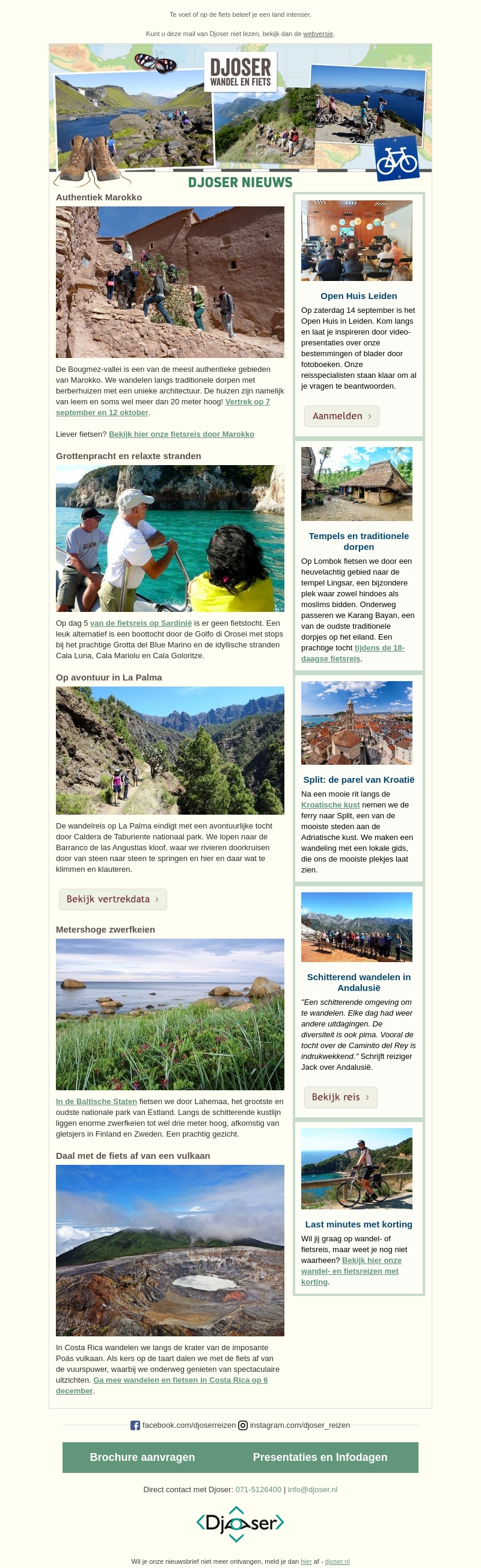 Verken de authentieke Bougmez-vallei in Marokko met prachtige wandelroutes. Bezoek de grotten en stranden van Sardinië en ga op avontuur in La Palma. Ontdek de traditionele dorpen op Lombok en wandel langs de Kroatische kust. Profiteer van last minute kortingen op diverse wandel- en fietsvakanties.