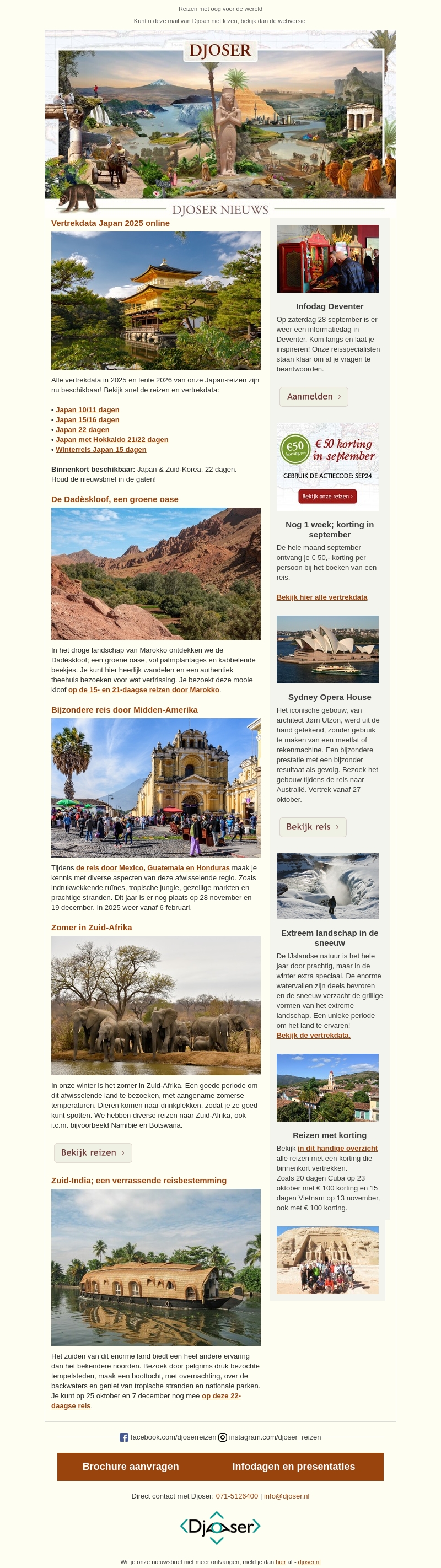 Nog 1 week korting | Japan 2025 | Zomer in Zuid-Afrika
