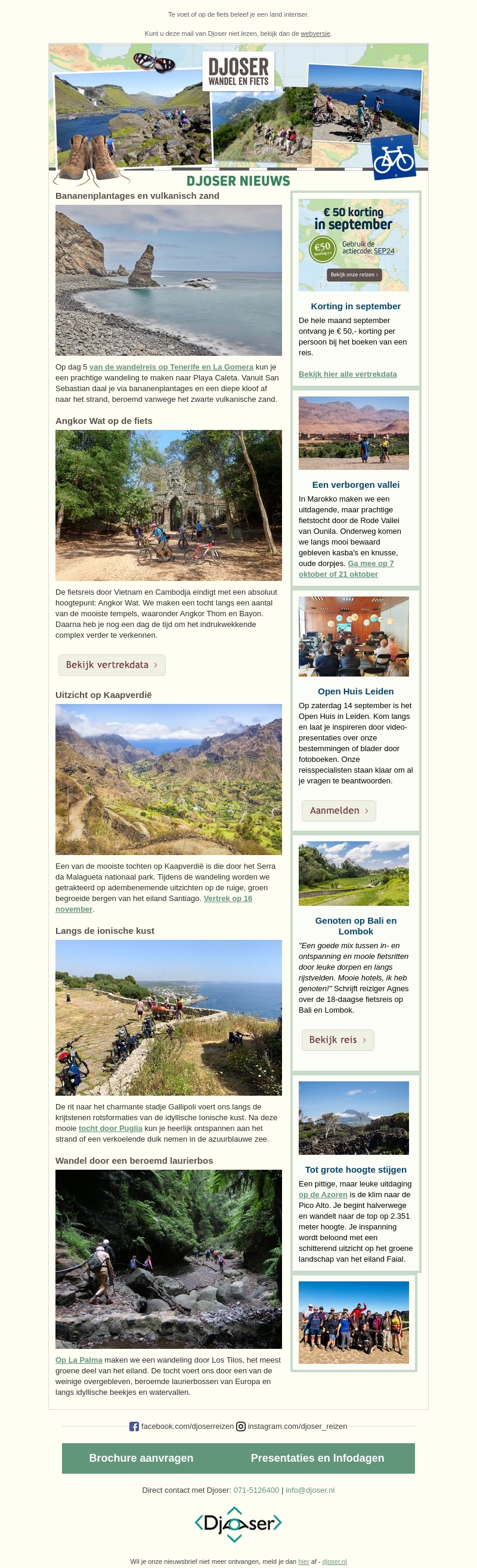 Wandelen op Kaapverdië | Septemberkorting | Angkor Wat op de fiets