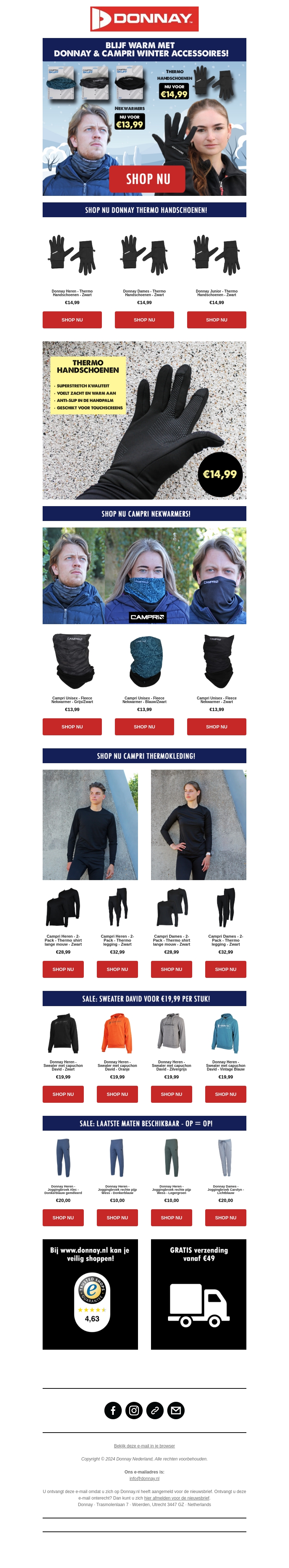 Bereid je voor op de koude maanden met onze onmisbare winteraccessoires van Donnay. Ontdek de nieuwste thermo handschoenen en nekwarmers van hoge kwaliteit. Perfect voor elke winteractiviteit, met speciale kortingen nu verkrijgbaar. Blijf warm en comfortabel, ongeacht het weer. Profiteer nu van de aantrekkelijke aanbiedingen! Bezoek onze webshop en shop direct.