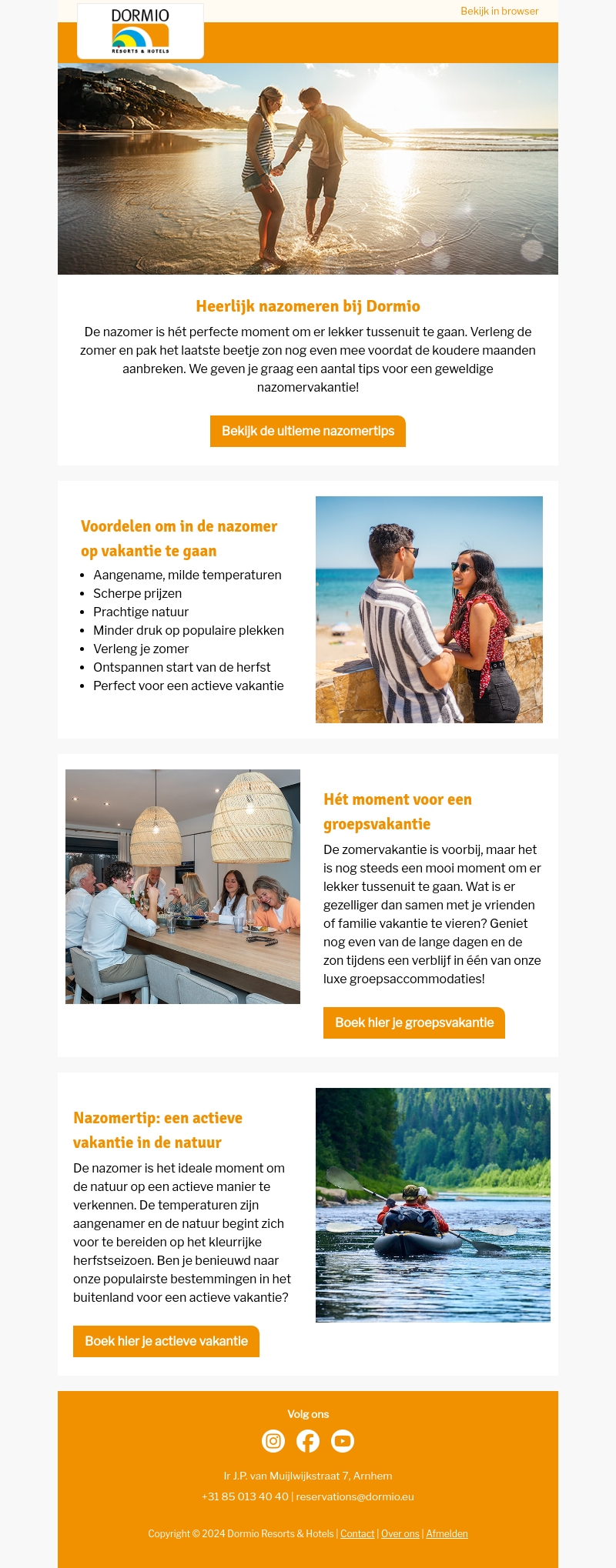 De nazomer is het perfecte moment om er even tussenuit te gaan. Dormio biedt je ultieme tips voor een geweldige nazomervakantie. Profiteer van milde temperaturen, scherpe prijzen en minder drukte op populaire plekken. Of je nu zin hebt in een groepsvakantie of een actieve vakantie in de natuur, bij Dormio vind je het allemaal.