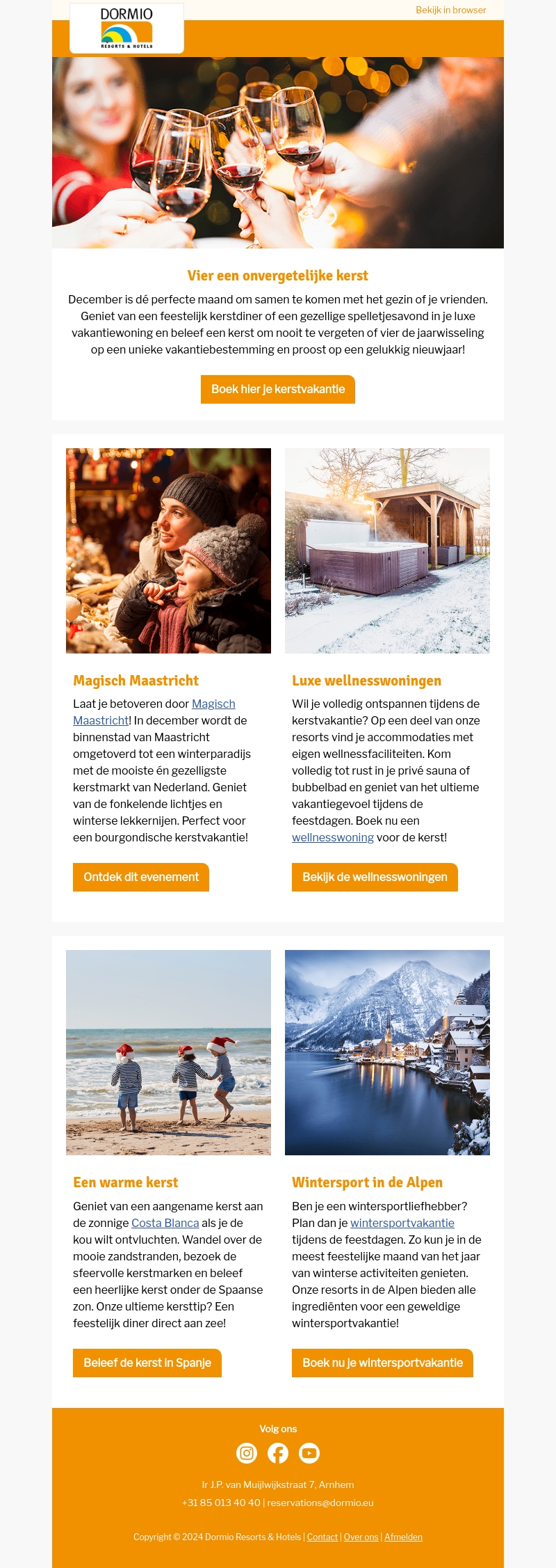 Ervaar een magische kerst met Dormio Resorts. Geniet van feestelijke markten in Maastricht, luxe wellnessaccommodaties, zonnige stranden in Spanje of wintersport in de Alpen. Boek nu jouw droomvakantie voor een onvergetelijke ervaring.