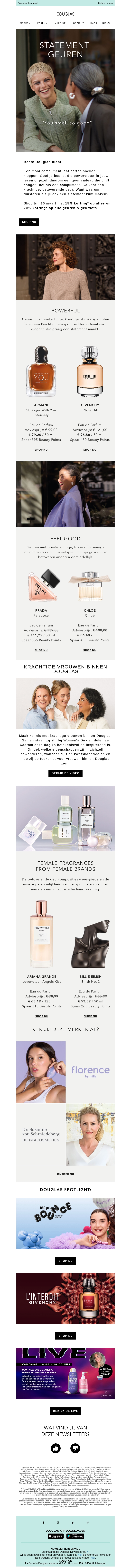 Mis deze kans niet om uw favoriete geur met korting aan te schaffen. Geniet van 15% korting op alles en 20% korting op geuren en geursets. Of u nu kiest voor een krachtige parfum of een subtieler aroma, er is voor ieder wat wils.