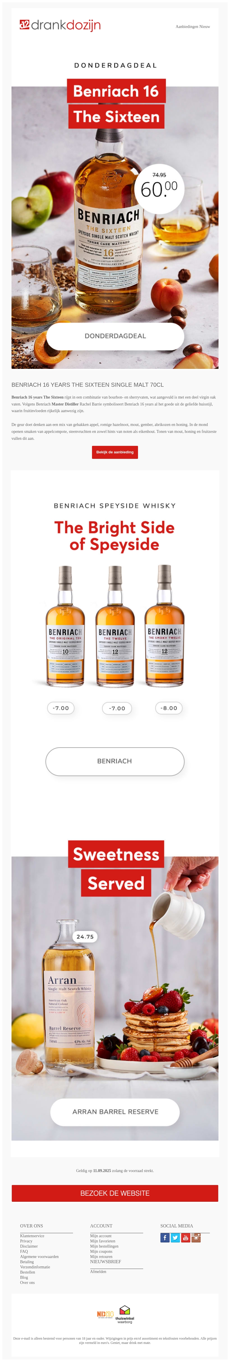 donderdagdeal benriach 16 years the sixteen single malt 70cl k3ygv6t6