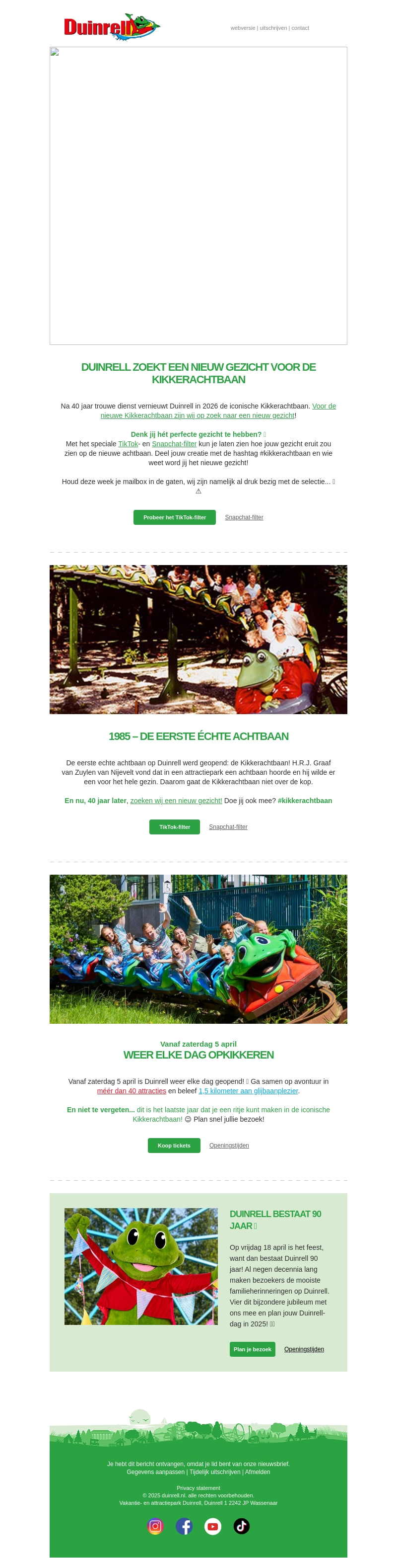 Duinrell zoekt nieuw gezicht voor Kikkerachtbaan πβ οΈ