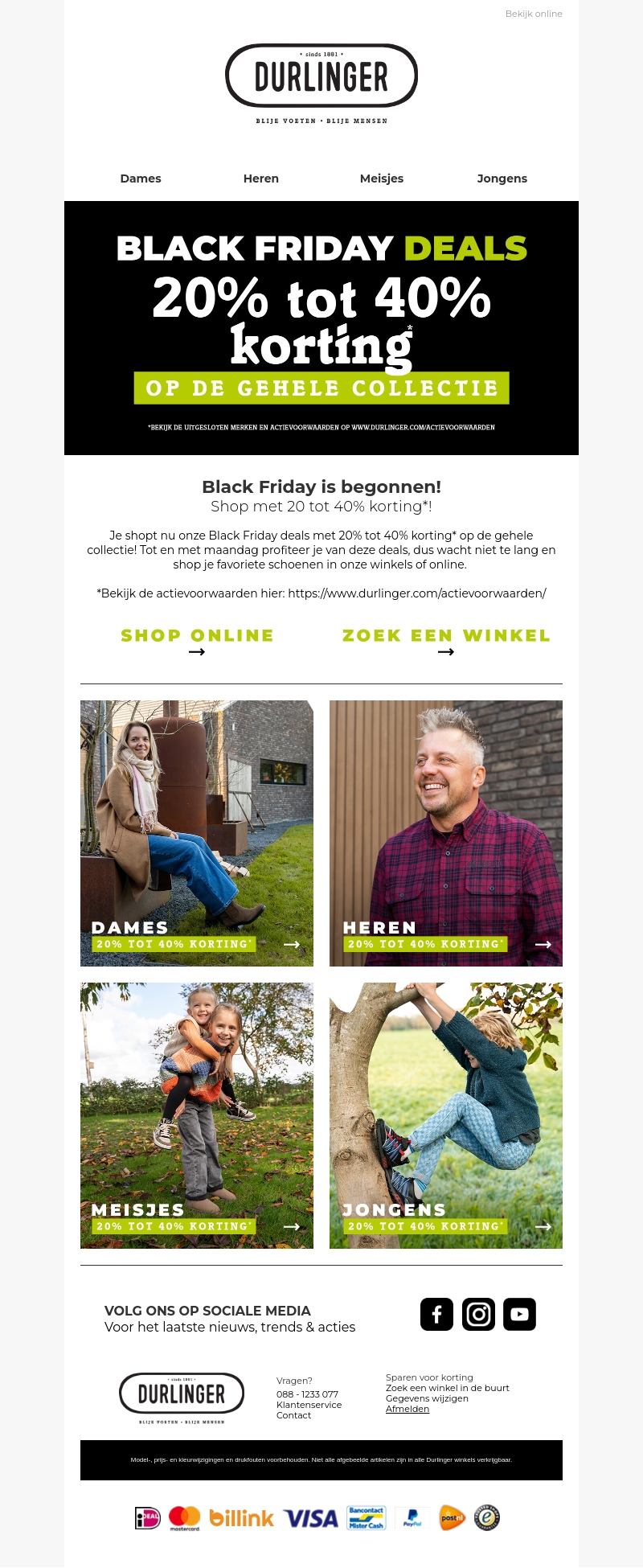 Black Friday is begonnen! Ontdek geweldige aanbiedingen met 20% tot 40% korting op de gehele collectie bij Durlinger. Winkel online of vind een winkel in de buurt om te profiteren van deze kortingen. Voorwaarden en uitgesloten merken kun je online bekijken.
