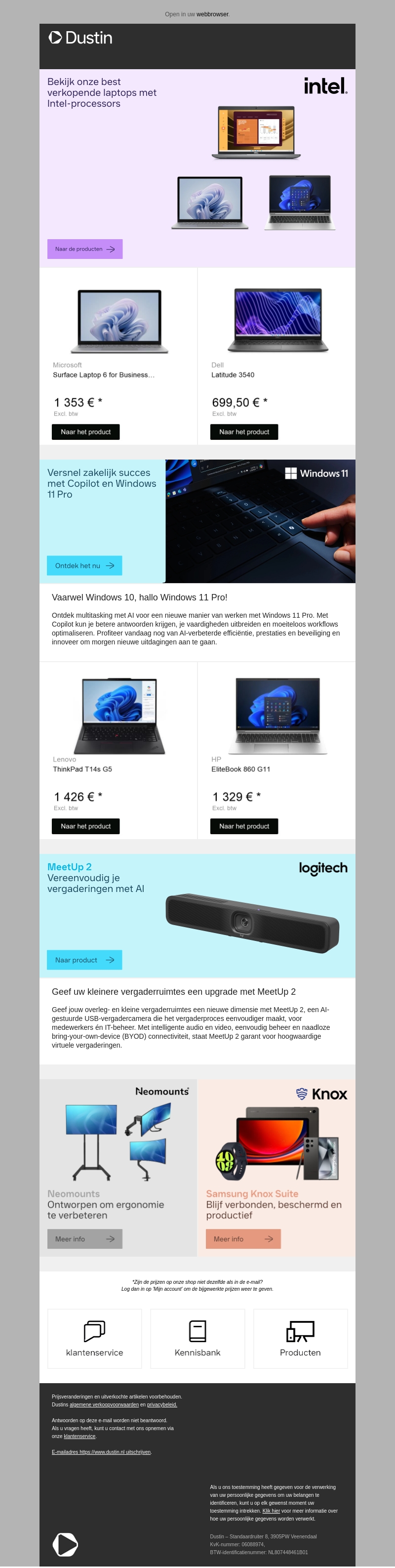 Verken onze best verkopende laptops uitgerust met krachtige Intel-processors. Van de veelzijdige Microsoft Surface Laptop 6 for Business tot de robuuste Dell Latitude 3540, wij hebben de perfecte laptop voor elke behoefte. Upgrade ook naar Windows 11 Pro voor nog meer productiviteit en beveiliging.