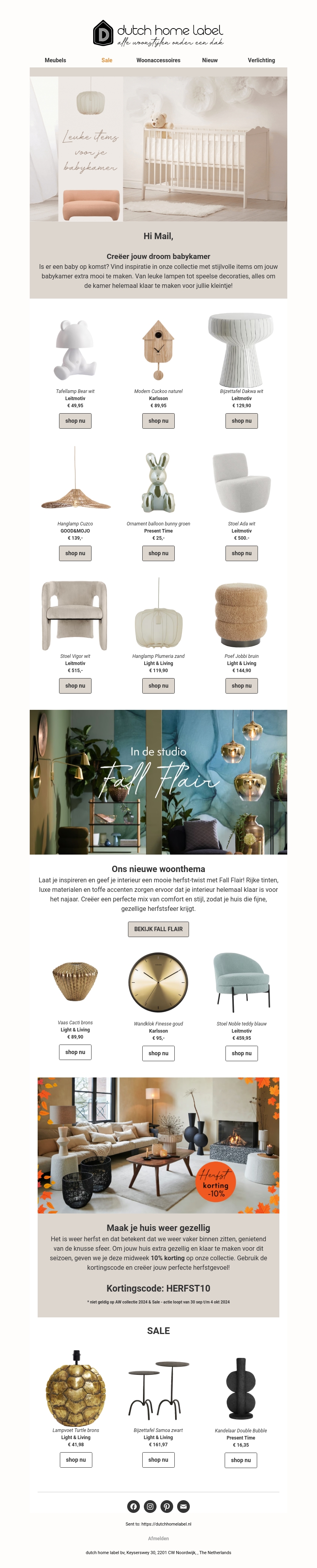Ontdek de nieuwste en meest stijlvolle items voor je babykamer bij Dutch Home Label. Van lampen tot decoraties, onze collectie heeft alles om jouw babykamer extra mooi te maken. Mis ook onze speciale herfstthema promotie niet!