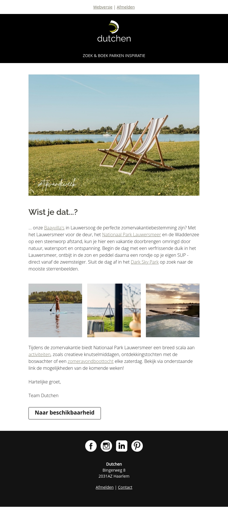 Wist je dat Baayvilla's in Lauwersoog de perfecte zomerbestemming zijn? Geniet van de natuur, watersporten en ontspanning in Nationaal Park Lauwersmeer. Start je dag met een frisse duik en sluit af onder de sterren in het Dark Sky Park.