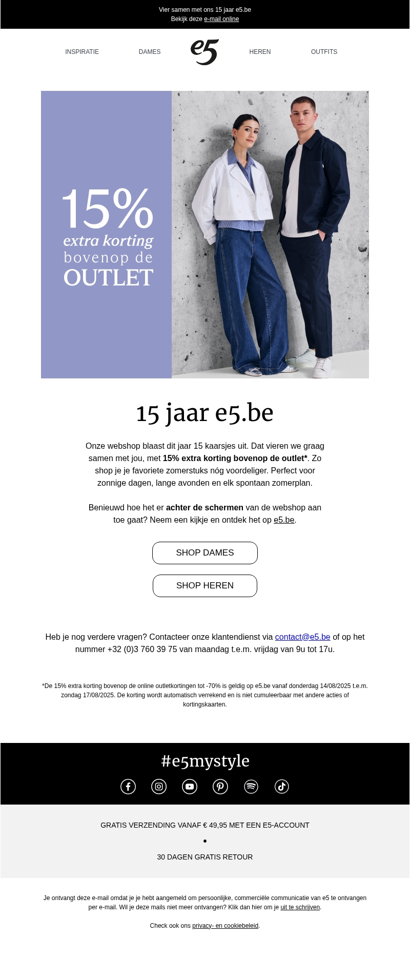 NU: 15% korting bovenop de outlet