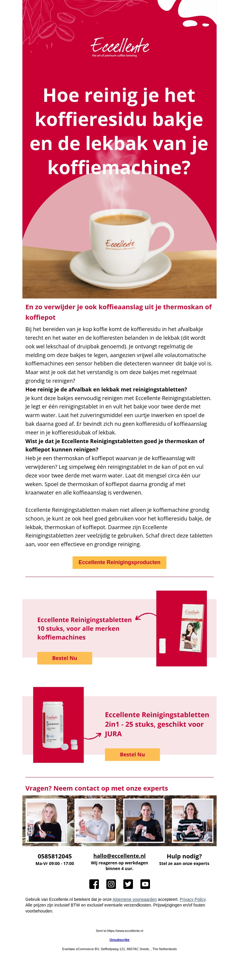 Leer hoe je het koffieresidu bakje en de lekbak van je koffiemachine effectief kunt reinigen met Eccellente Reinigingstabletten. Deze veelzijdige tabletten zorgen niet alleen voor een schone machine, maar kunnen ook in de thermoskan of koffiepot worden gebruikt. Ontdek handige tips en voorkom koffievlekken met ons deskundig advies.