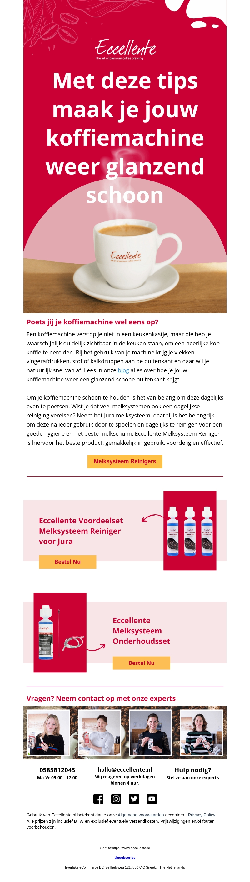 Houd je koffiemachine glanzend schoon met onze handige tips. Vingerafdrukken, kalkaanslag en stof kunnen de uitstraling van je apparaat bederven. Onze gids helpt je deze problemen effectief aan te pakken. Leer meer over dagelijkse reiniging van het melksysteem voor optimale prestaties. Ontdek waarom Eccellente's Melksysteem Reinigers de beste keuze zijn voor jouw machine.
