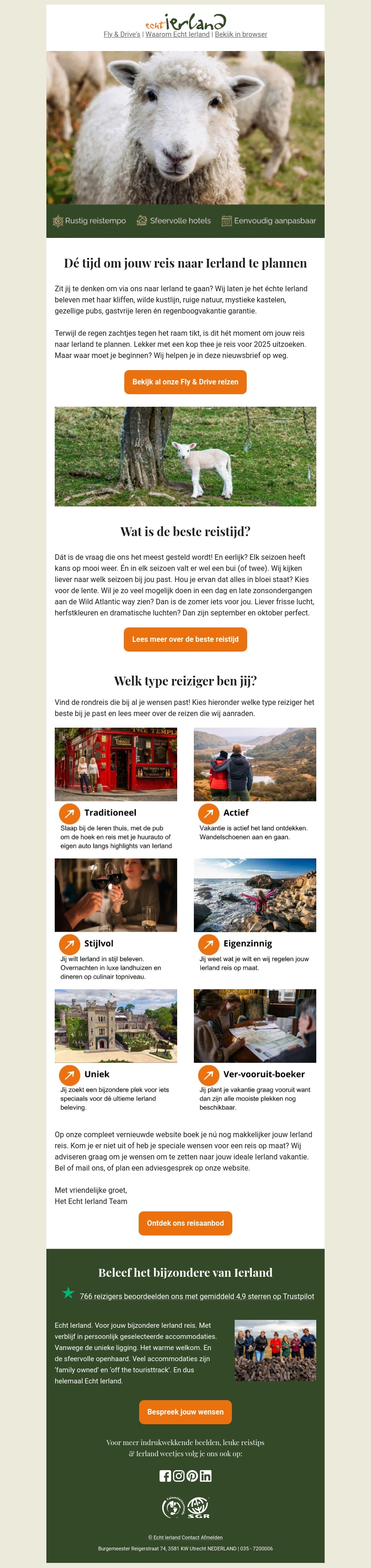 Ontdek de betovering van Ierland met ons. Of je nu van kliffen, kastelen, of rustige hotels houdt, wij hebben de ideale reiservaring voor jou. Leer meer over de beste reistijd en welk type reizen bij jou passen. Bezoek onze vernieuwde website en boek jouw unieke vakantie. Laat je inspireren door ons team voor een onvergetelijke reiservaring.