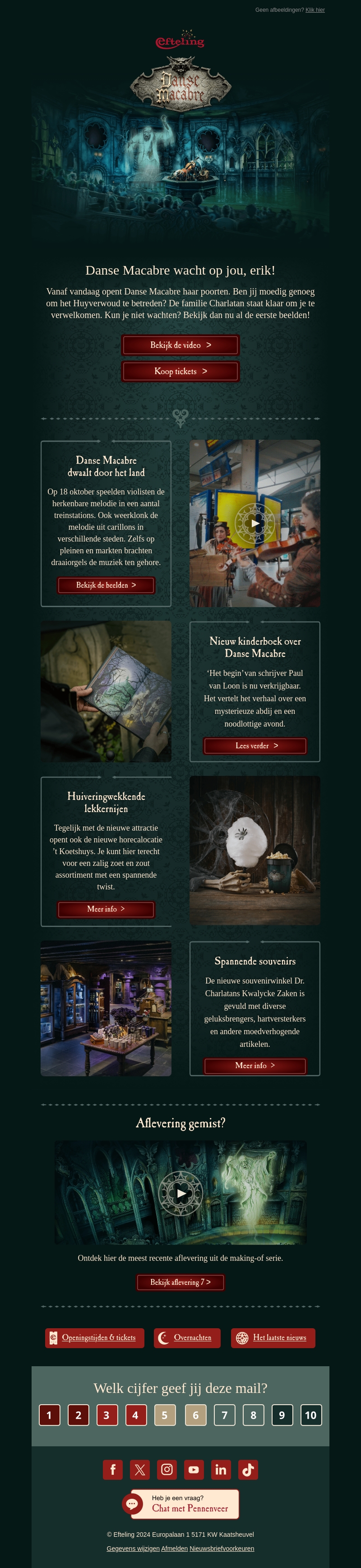 Danse Macabre is nu geopend en nodigt je uit voor een avontuurlijke ervaring. Ontdek de eerste beelden en leer meer over de voorstelling. Er zijn spannende souvenirs en lekkernijen te vinden, evenals een nieuw kinderboek. Mis de kans niet om de mysterieuze sfeer te ervaren.
