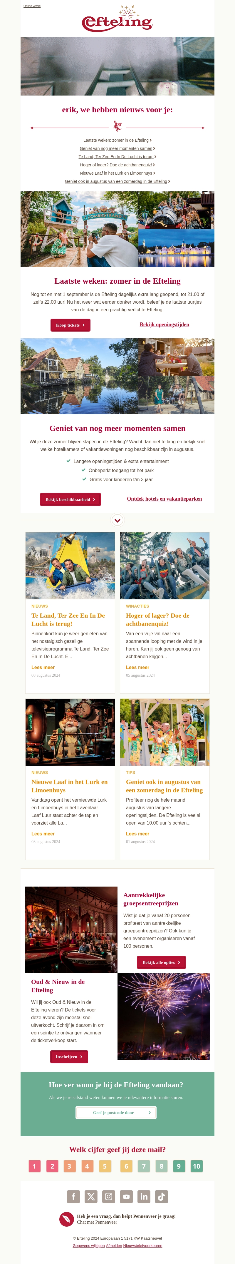 De Efteling biedt de laatste weken van de zomer extra lange openingstijden en volop entertainment. Bezoek vernieuwde attracties, geniet van live shows en verblijf in prachtige accommodaties. Mis deze unieke kans niet om met het hele gezin onvergetelijke momenten te beleven.