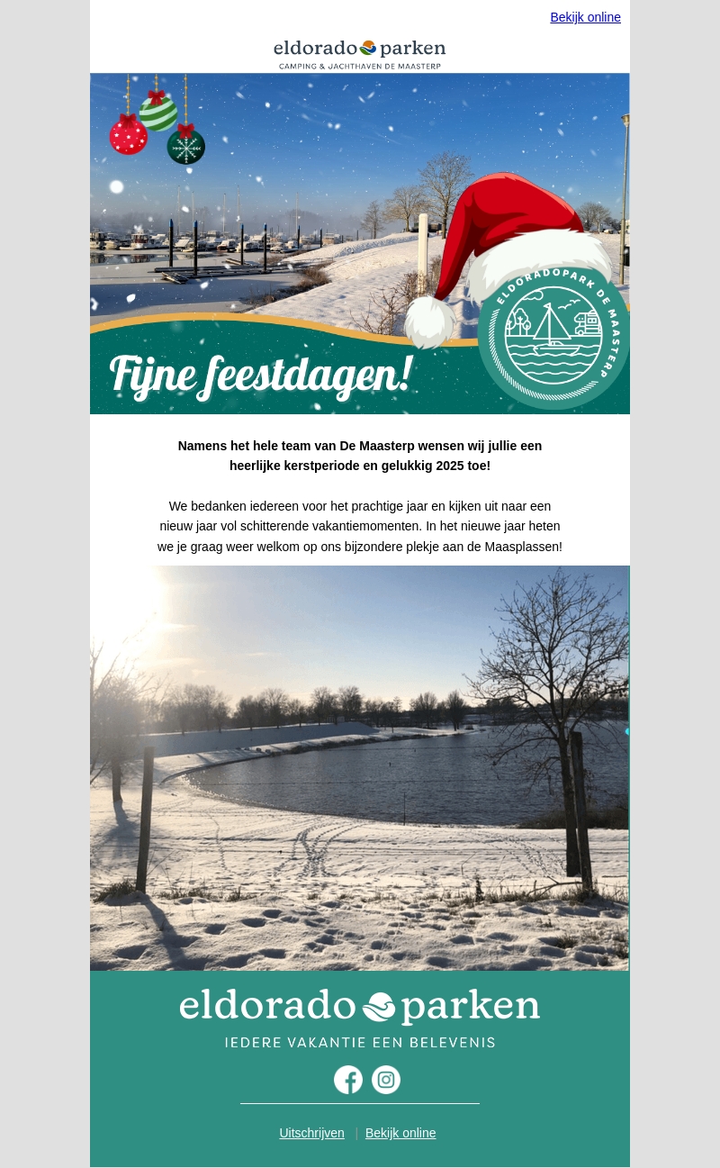 Eldorado Parken wenst iedereen fijne feestdagen met een warme uitnodiging voor een bezoek in het nieuwe jaar. Bedankt voor een schitterend jaar en verheug je op nieuwe avonturen bij De Maasterp in 2025.