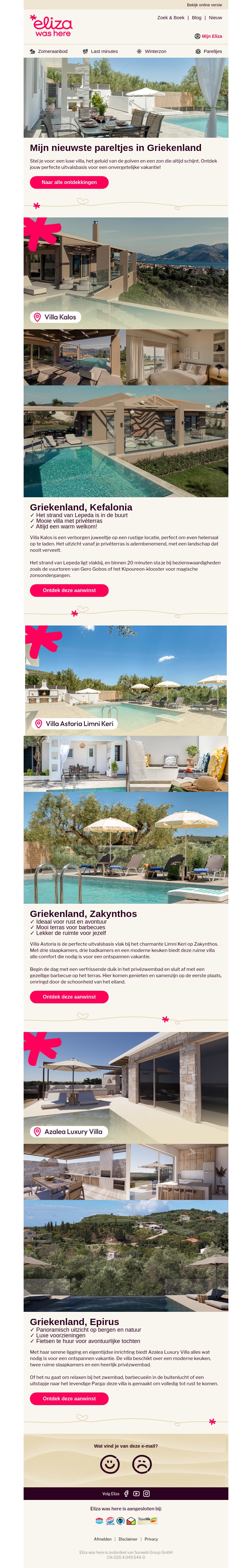 Duik in de schoonheid van het Griekse leven met onze exclusieve villa-aanbiedingen. Van de serene omgeving van Kefalonia tot het avontuurlijke Zakynthos, ontdek unieke accommodaties. Geniet van panoramische uitzichten en luxe faciliteiten geschikt voor elke reiziger. Plan nu uw droomvakantie en beleef een onvergetelijke ervaring.
