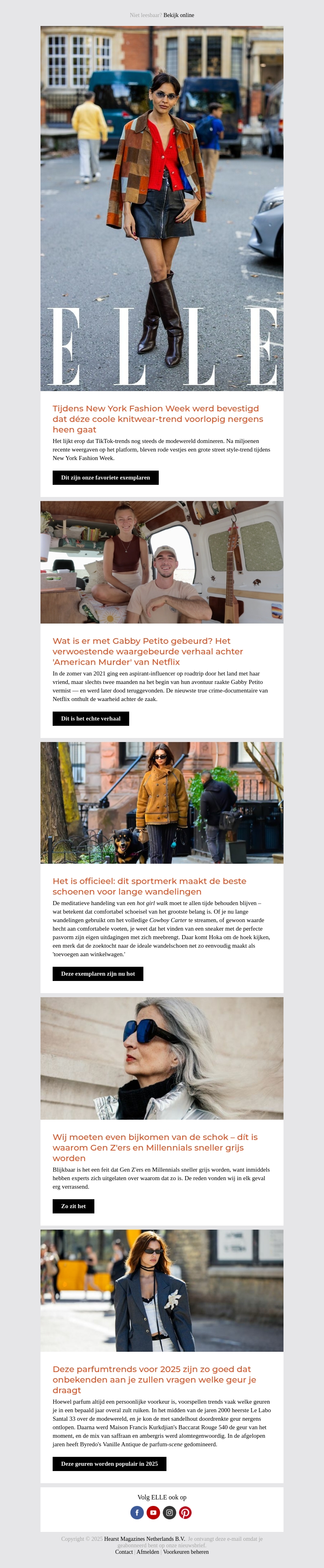 In de nieuwsbrief ontdek je waarom Gen Z'ers en Millennials sneller grijs lijken te worden. Ook bespreken we de invloed van mode en lifestyle-trends. Van de nieuwste knitwear-trends tot parfumvoorspellingen voor 2025, krijg je een kijkje in de wereld van jonge generaties.