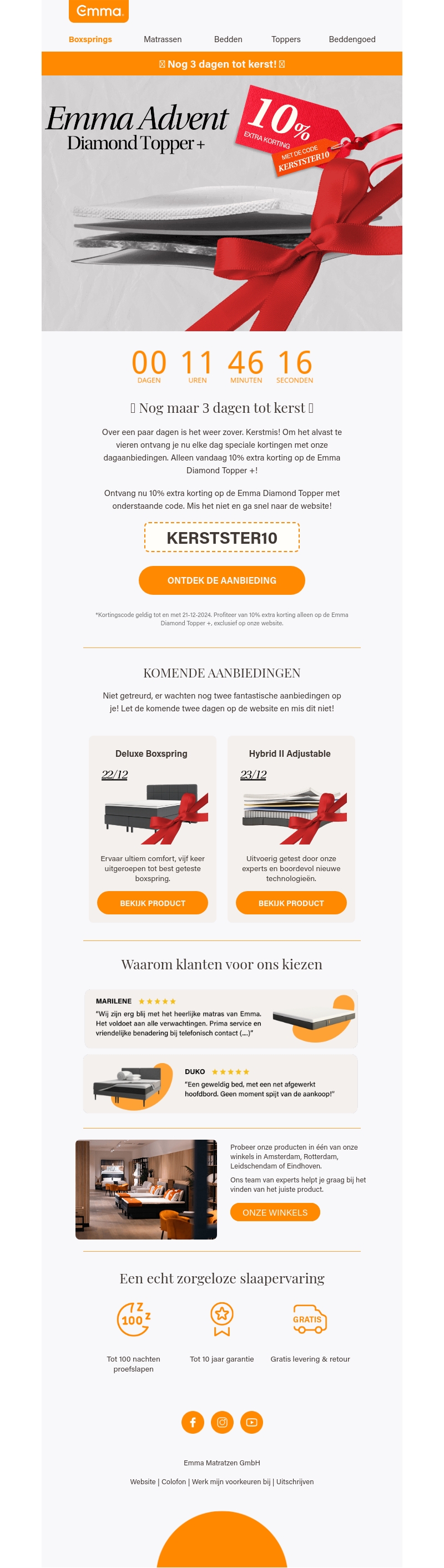 Bereid je voor op een magische Kerst met Emma's exclusieve kortingen. Alleen vandaag krijg je 10% extra korting op de Emma Diamond Topper met de code KERSTSTER10. Ontdek onze aanbiedingen en geef je slaapervaring een upgrade. Dit is de perfecte kans om te profiteren van premium comfort.