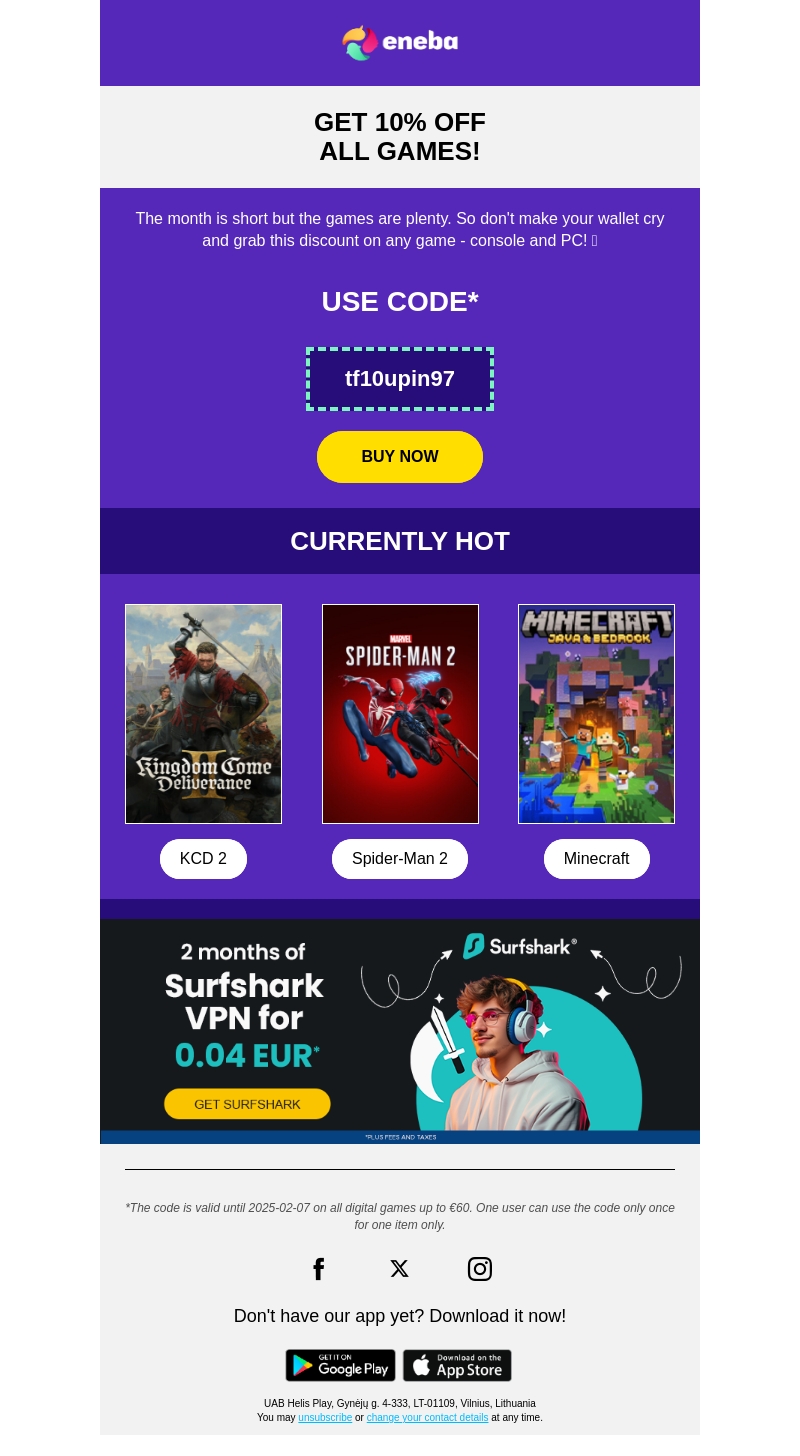 Deze maand is kort, maar de lijst met gave games is lang! Krijg nu 10% korting op alle digitale games tot β¬60 met onze exclusieve code. Mis deze kans niet om te genieten van titels zoals Spider-Man 2 en Minecraft. Gebruik de code voor een beperkt bedrag en houd je portemonnee tevreden.