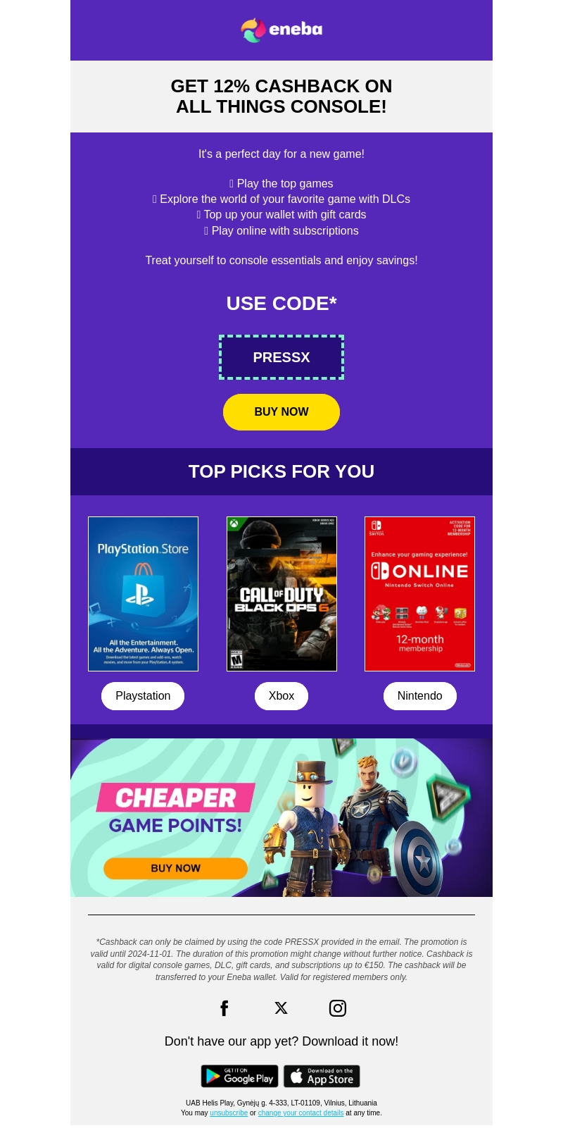 Ontdek geweldige midweek deals voor console-spelers! Krijg 12% cashback op jouw favoriete consolespellen, giftcards en abonnementen. Gebruik de code PRESSX en bespaar op alle console essentials. Verken een wereld van top games met exclusieve aanbiedingen. Geldig tot 2024-11-01.