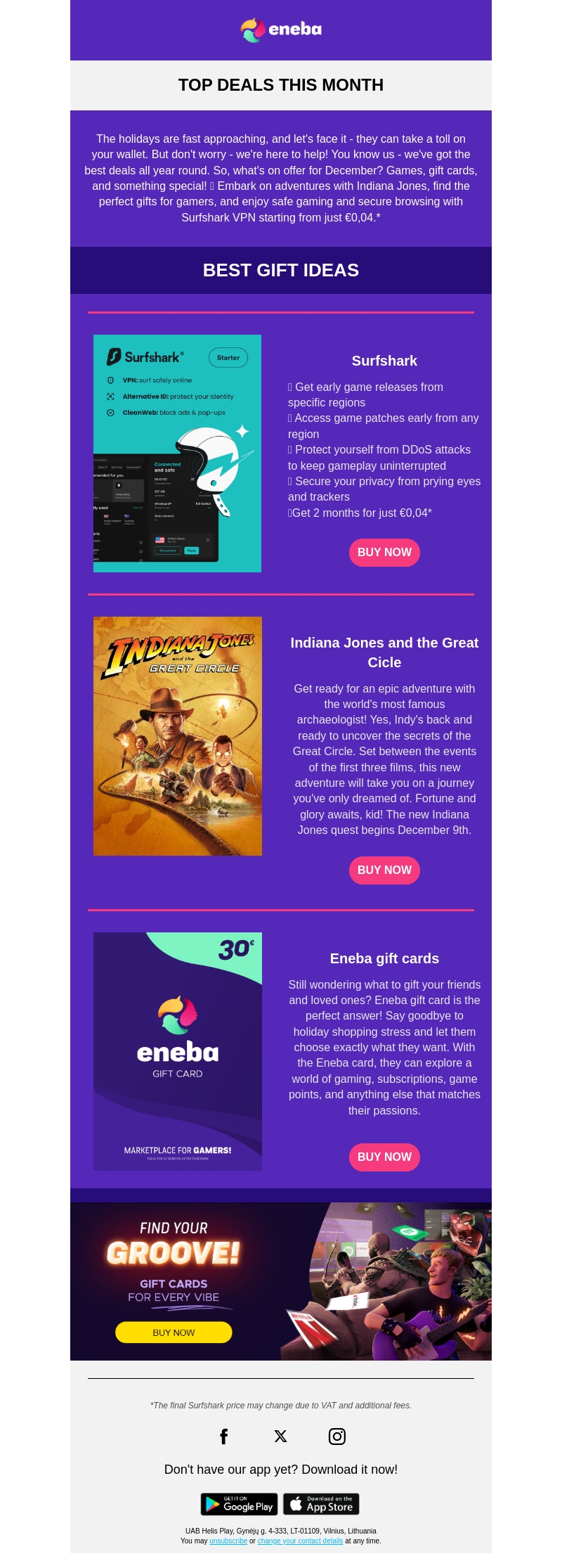 De feestdagen staan voor de deur en wij helpen je besparen! Ontdek deze maand spannende aanbiedingen, waaronder Surfshark VPN, Indiana Jones-avonturen en Eneba gift cards. Perfect voor gamers en avonturiers. Bekijk onze topcadeautips en vind het perfecte cadeau voor iedereen!
