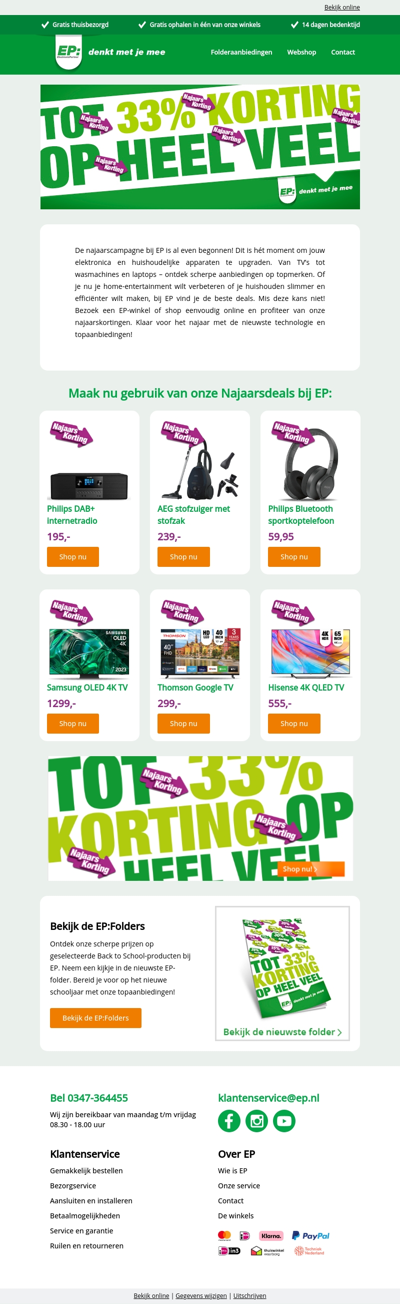 De najaarscampagne bij EP is begonnen! Dit is het moment om jouw elektronica en huishoudelijke apparaten te upgraden met kortingen tot 33%. Van TV’s tot wasmachines en laptops – ontdek scherpe aanbiedingen op topmerken. Bezoek een EP-winkel of shop eenvoudig online en profiteer van deze najaarskortingen.