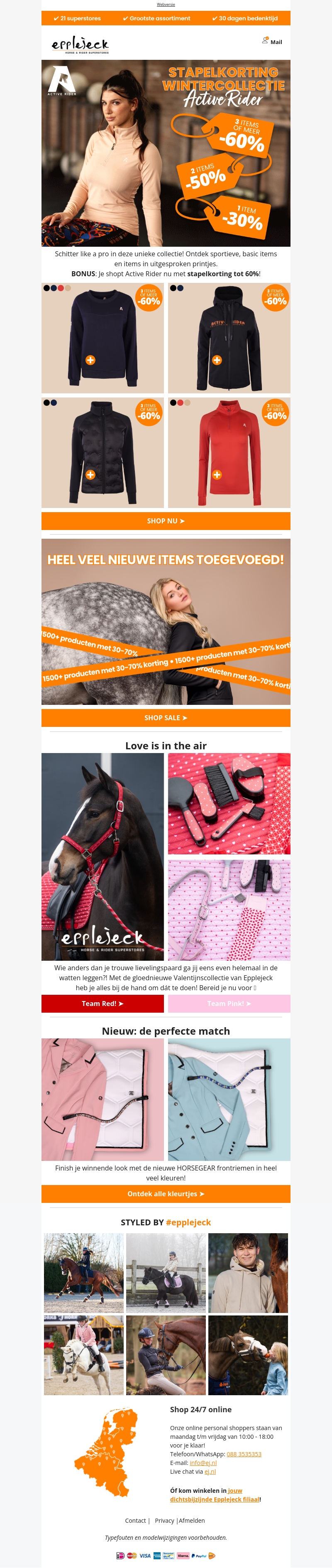 Ervaar de winter in stijl met onze nieuwste collectie van Active Rider. Ontvang tot wel 60% stapelkorting bij aankopen van meerdere items. Voeg dit seizoen nieuwe sportieve en modieuze stukken toe aan je garderobe. Bekijk nu de toegevoegde items en bereid je voor met de perfecte Valentijnscollectie. Shop online en ontdek de kleuren van jouw keuze.