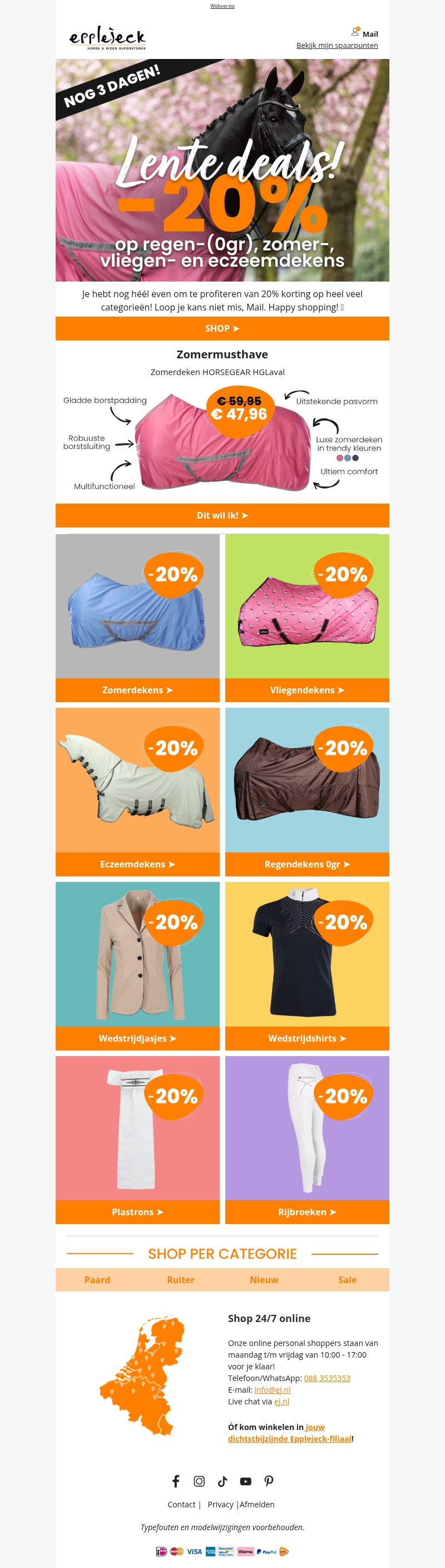 π Zadeldekken -20% | Wedstrijdjasjes - 15% | EJ elektrolyten -15%