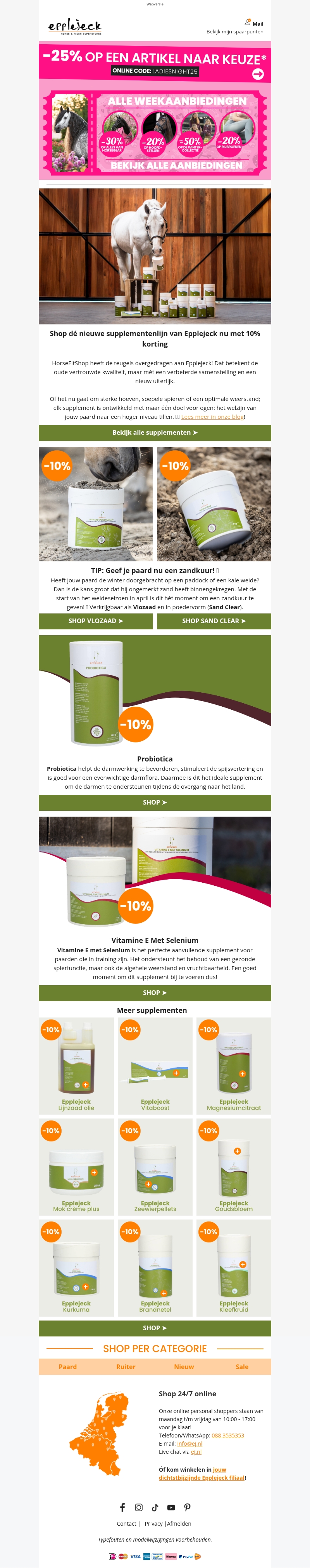 π Zadeldekken -20% | Wedstrijdjasjes - 15% | EJ elektrolyten -15%