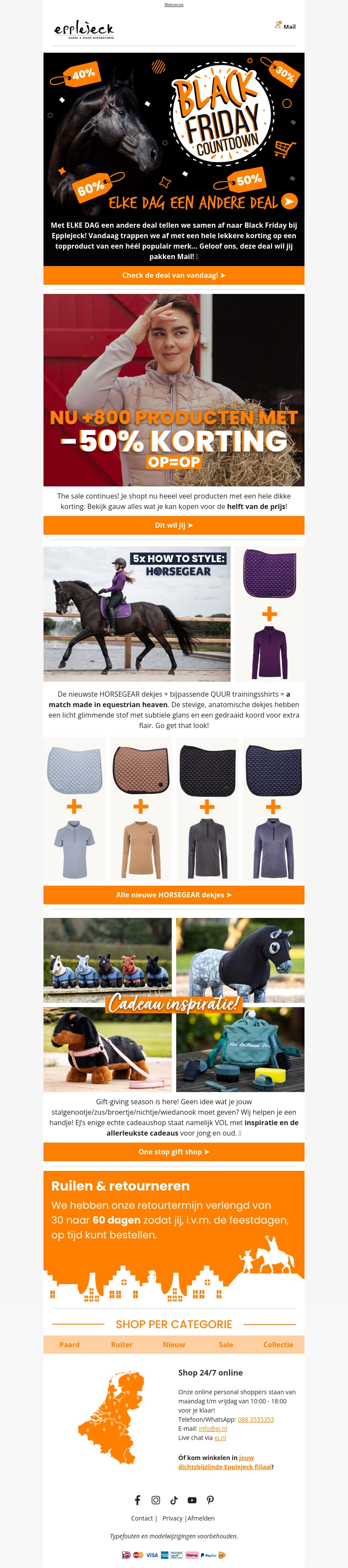 Start de Black Friday countdown met geweldige kortingen bij Epplejeck. Elke dag een andere deal met kortingen tot 60% op populaire merken. Shop nu meer dan 800 producten met flinke korting. Vind cadeau-inspiratie voor de feestdagen en profiteer van verlengde retourtermijnen.