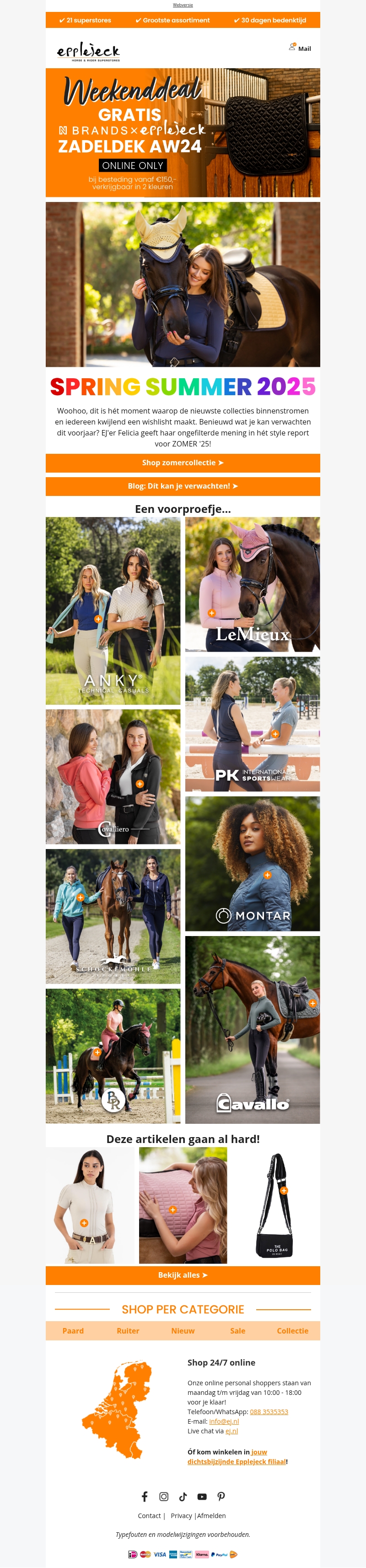 Bereid je voor op de zomer van 2025 met de nieuwste trends voor naar de stal. Ontdek stijlvolle outfits en accessoires die je look compleet maken. Felicia deelt exclusieve inzichten over must-have items voor dit seizoen. Mis de weekenddeal niet en shop de zomercollectie online.