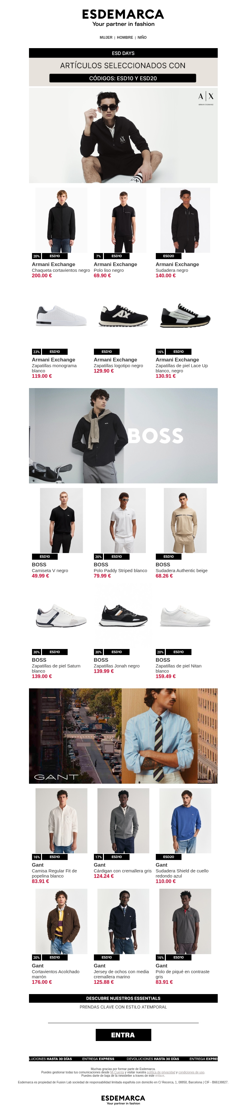 Armani Exchange, BOSS y Gant: estilo sin límites