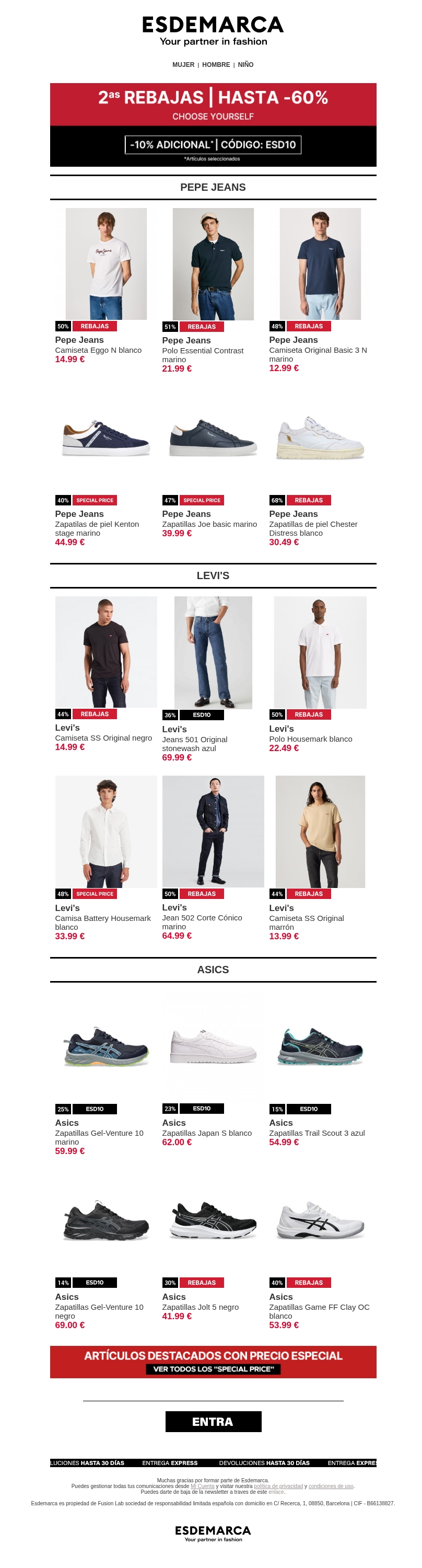 Pepe Jeans, Levi's y Asics con hasta -60% 👏